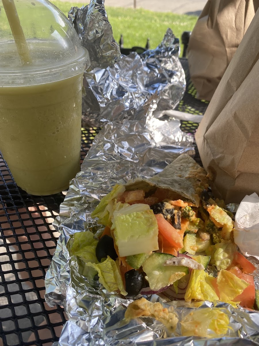 A really cute little shop. Old style Latin vibes, really pretty interior decor, similar to the Pistachio cafe everyone raves about. Although in my opinion this place is better simply because the workers there are very friendly, and welcoming unlike Pistachio's. I was charmed as soon as she said "hello". They have a lot to offer at a good price from a variety of different coffee, tea, smoothies, sandwiches, wraps, cakes, cookies, muffins, etc etc. I ordered the Emerald Elixir ($6 and some change) which was AWESOME. I have a sweet tooth and I love anything that's green apple flavored so I already knew I'd love it. It's a blend of fruits and veggies, pretty healthy with no food coloring or anything like that. It has a rich green hue as suggested by the name. I highly recommend that to you as well as a visit to Deja Brew, dear reader.